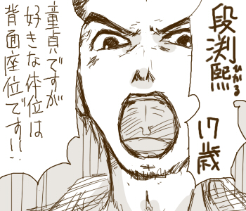 あれ、「~の国から来ました」に対して「日本は今ふたたびの鎖国へ――・・・」ていう流れが決まってて、最初は「変態の国」だったんだけど、自覚がある変態は偽物だよなーとか考えてて、とりあえず変態っぽい容姿を想像してたら、股間どうしようってなって。